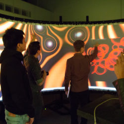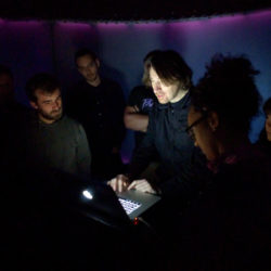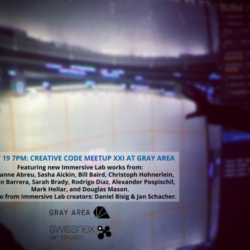 As part of the Fall 2015 activities in California, the ICST and the Immersive Lab was invited to hold a workshop and exhibition at the Gray Area Foundation for the Arts, located in San Francisco’s Mission district. After being shipped form San Diego at the beginning of November, the Immersive Lab was set up and shown at a public opening on 13. November. The opening reception included a panel discussion between ICST’s Jan Schacher and Daniel Bisig and the local multichannel experts in the persons of Cinechamber’s Naut Humon and Stanford’s Fernando Lopez-Lezcano. Embedded within Gray Area’s course offerings and organised by Matt Ganucheau, a workshop for creative coding artists from the Bay Area was held from Saturday 14. November until Thursday 19. November. During this week, ten artists started, learned and each one created a working piece for the Immersive Lab. On 19. November, the results of this week were shown to the public in a Creative Coding Meetup, which attracted a large number of tech savvy developers and artists.