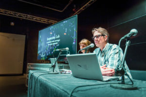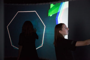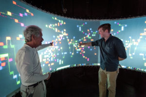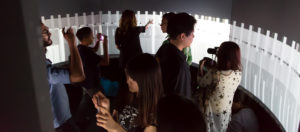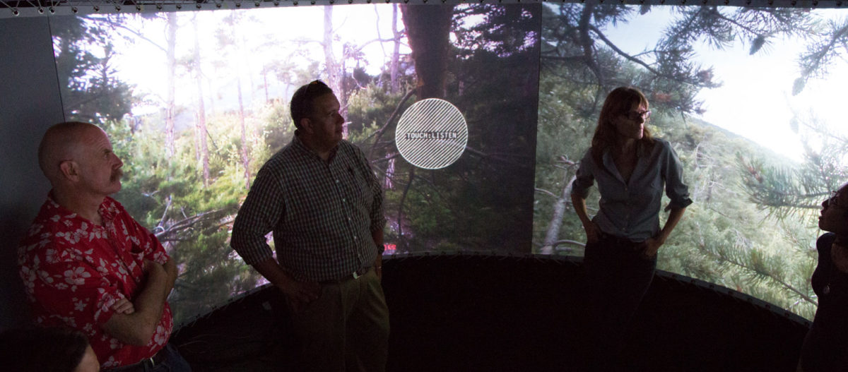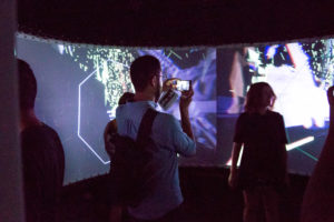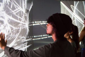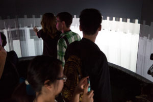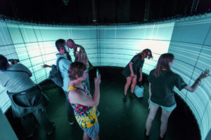 The Immersive Lab was shown to the public on the 9. October with a talk and guided tours in the Performative Computing Lab of the CalIT2/Qualcomm Institute. At his stage the catalogue of previous works was shown to the public. On subsequent dates individual exhibition moments were held with guests from the UCSD Library, Journalist/Publicist Michael Flaster and others. By the end of the month of October, student works were in state to be shown to guests visiting the lab.In parallel, the ICST team had an exhibition in the CalIT2 gallery with the multichannel audio installation ‘Aggregat’.This activity was made possible in part by support from the Dean’s Office of the Music Department of UCSD. Main support came from swissnex San Francisco, the Consulate General of Switzerland in San Francisco and the Zurich University of the arts with the Institute for Computer Music and Sound Technology.