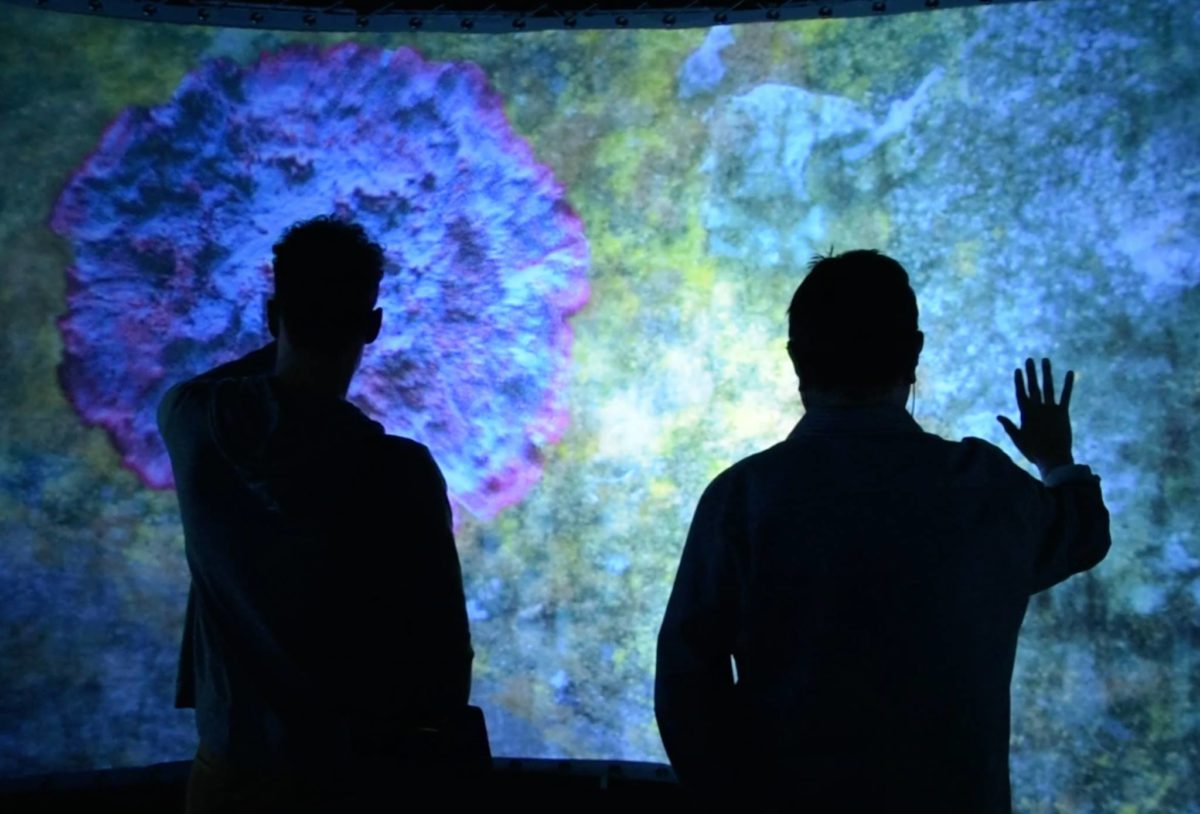 LEIKHĒN is an audiovisual installation, created for and during an artist in residence at the Immersive Lab (IL) at ICST Zurich. It is inspired by the composite plant of lichen (from Greek: leikhēn), which is the result of a hybrid partnership between a fungus and an alga. The installation is therefore a reflection upon the interaction and mutualistic relationship between two organisms, and how this union impacts on their behaviours inside a created audiovisual immersive space,