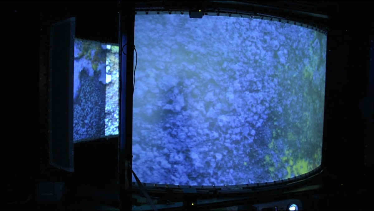 The acoustic part of the environment is composed with sounds from crickets and the visual with close-up images from diverse lichen species that together recreate a nature reserve.