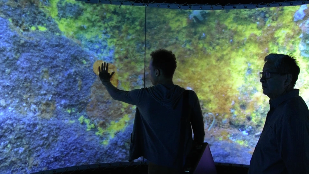 Visually, as soon as guests touch the screen, a lichen appears on the touched point, and this lichen is amplified in size in direct connection to the duration of the touch, whereby the sonic environment reacts accordingly to the host’s reaction, highlighting the mutualistic relationship. The installation invites therefore guests to be aware of their behaviour towards the host’s habitat.