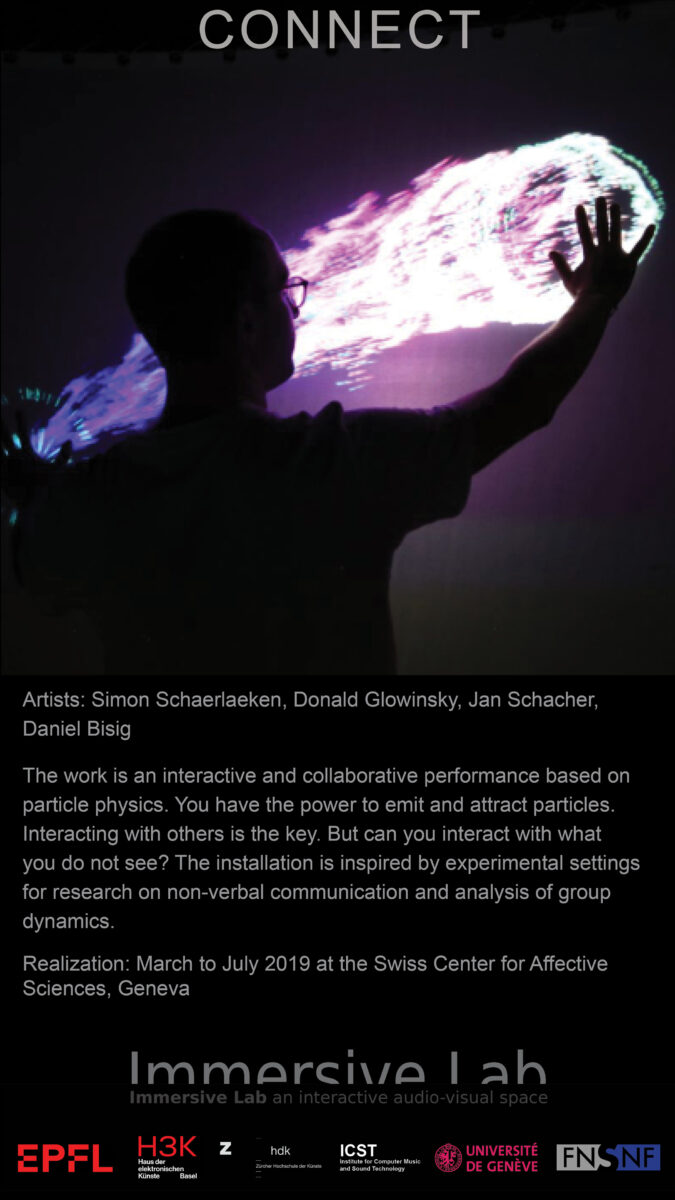 Showcasing how art and science can inform each other in the investigation of immersive and interactive media, the Immersive Lab serves as a platform for artistic and scientific experimentation and creation. Throughout the project, artists, scientists, curators and educators collaborated on creations and exhibitions. The resulting works show how experience and communication affect our perception and the application of digital media.
